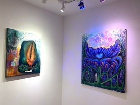 我將渾沌花和混蛋花漫畫裡平⾯⿊⽩線稿的⼈物⾛入繪畫性的⽴體世界中,這些⾯無 表情的⼩紙⼈、浮貼於畫布上的紙⽚,令⼈衝突的奇異感像是連接這兩種場域的線索, 好想掀開...掀開看看裡⾯是什麼什麼什麼︖